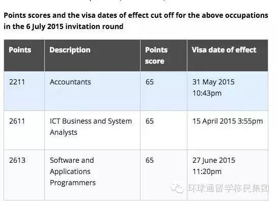 会计,ICT business analyst和Developer programmer等三大热门职业,移民局采取的是pro rata平均分配到全年发送邀请。由于上一财年积压了较多申请,会计仅邀请到5月31号的65分,ICT Business analyst仅邀请到4月15号的65分,Developer programmer仅邀请到6月27号的65分。